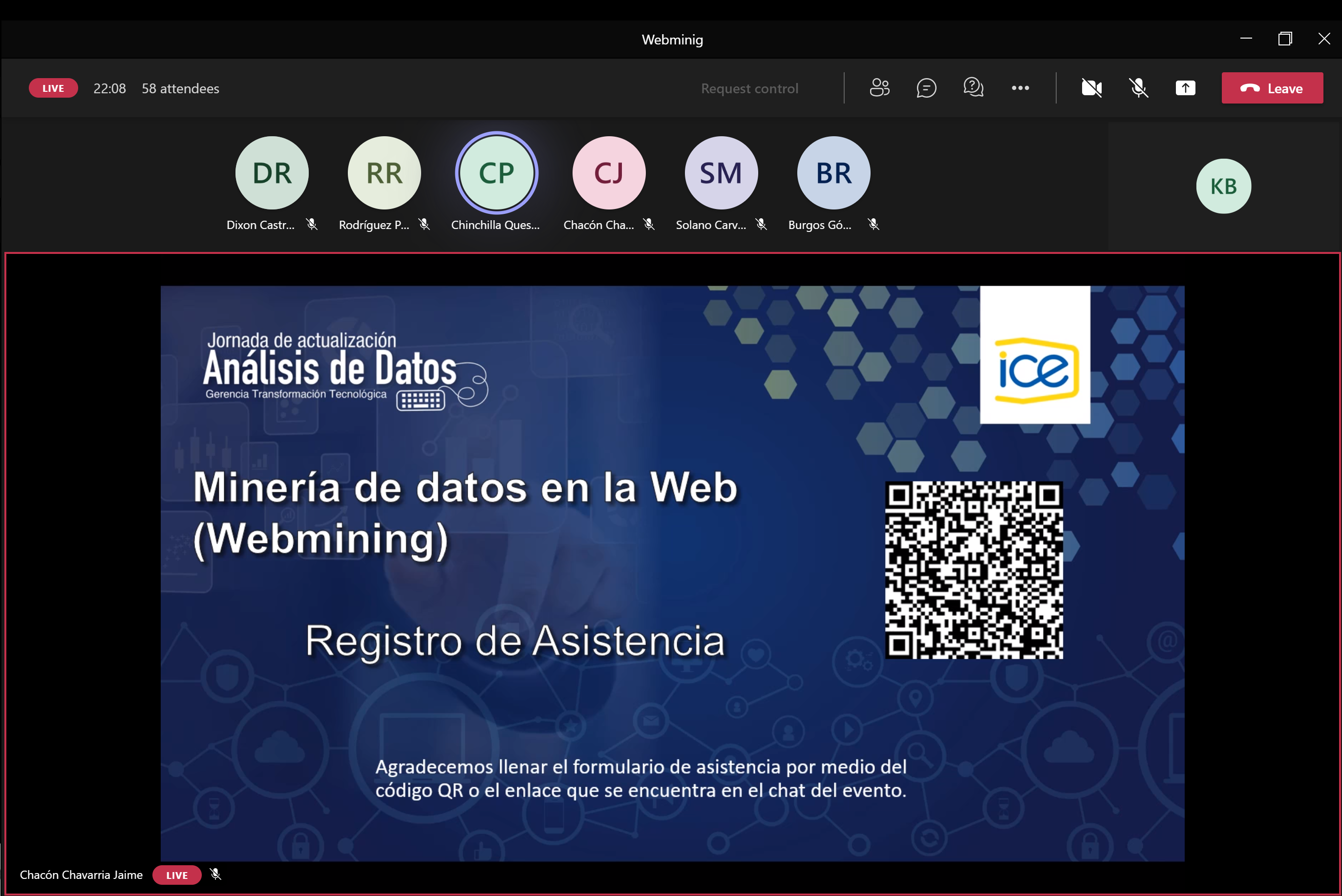 La investigadora Dra. Kryscia Ramírez Benavides participó como expositora en la charla "Minería de datos en la web", organizada por el Instituto Costarricense de Electricidad (ICE).