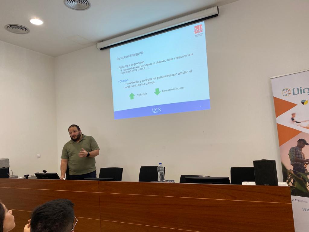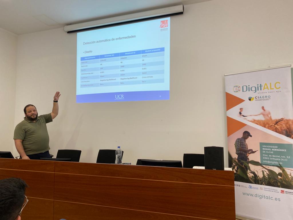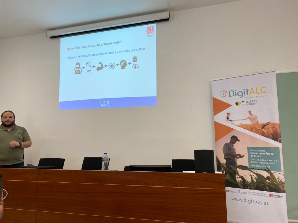 El investigador Mag. Jose Antonio Brenes participó en las Jornadas de Aplicaciones de la IA en Agricultura y resultados del proyecto AI4YIELD, la cual se llevó a cabo en Alicante, España el viernes 21 de octubre. El Mag. Brenes expuso acerca de la "Detección temprana de enfermedades en cultivos hortícolas".