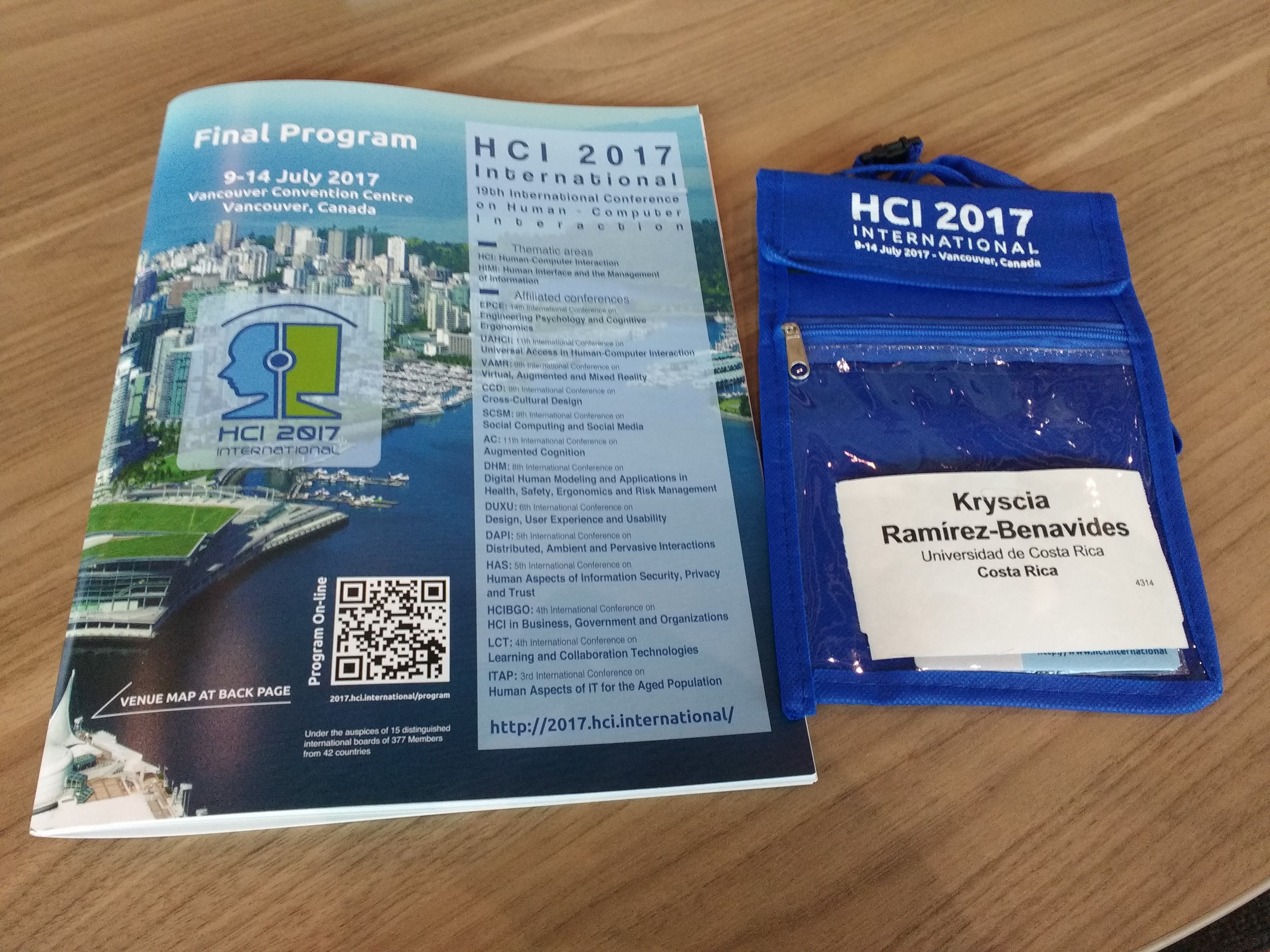 La investigadora del CITIC y profesora de la ECCI, Kryscia Ramírez, participó en la 19th International Conference on Human-Computer Interaction and Afiliated Conferences HCI International 2017, la cual fue llevada a cabo en Vancouver, Canadá del 09 al 14 de julio del 2017.