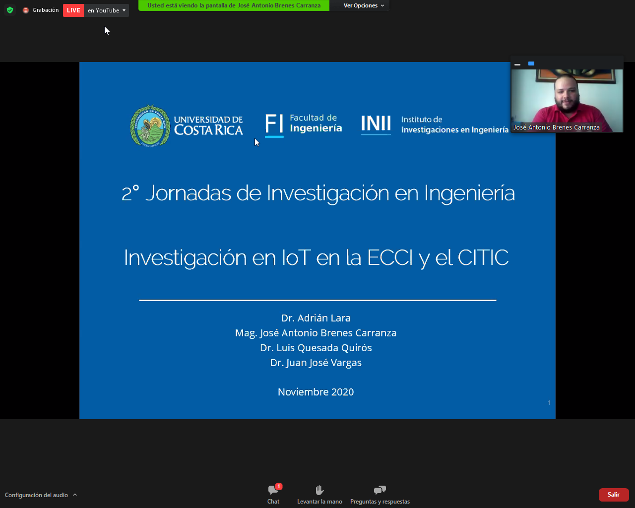 Investigadores del CITIC participaron en las II Jornadas de Investigación en Ingeniería, las cuales se llevarón a cabo virtualmente del 10 al 12 de noviembre del 2020, por medio de la plataforma Zoom. Los trabajos presentados por los investigadores fueron los siguientes: